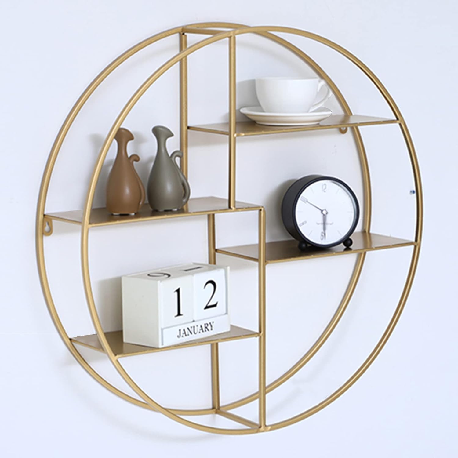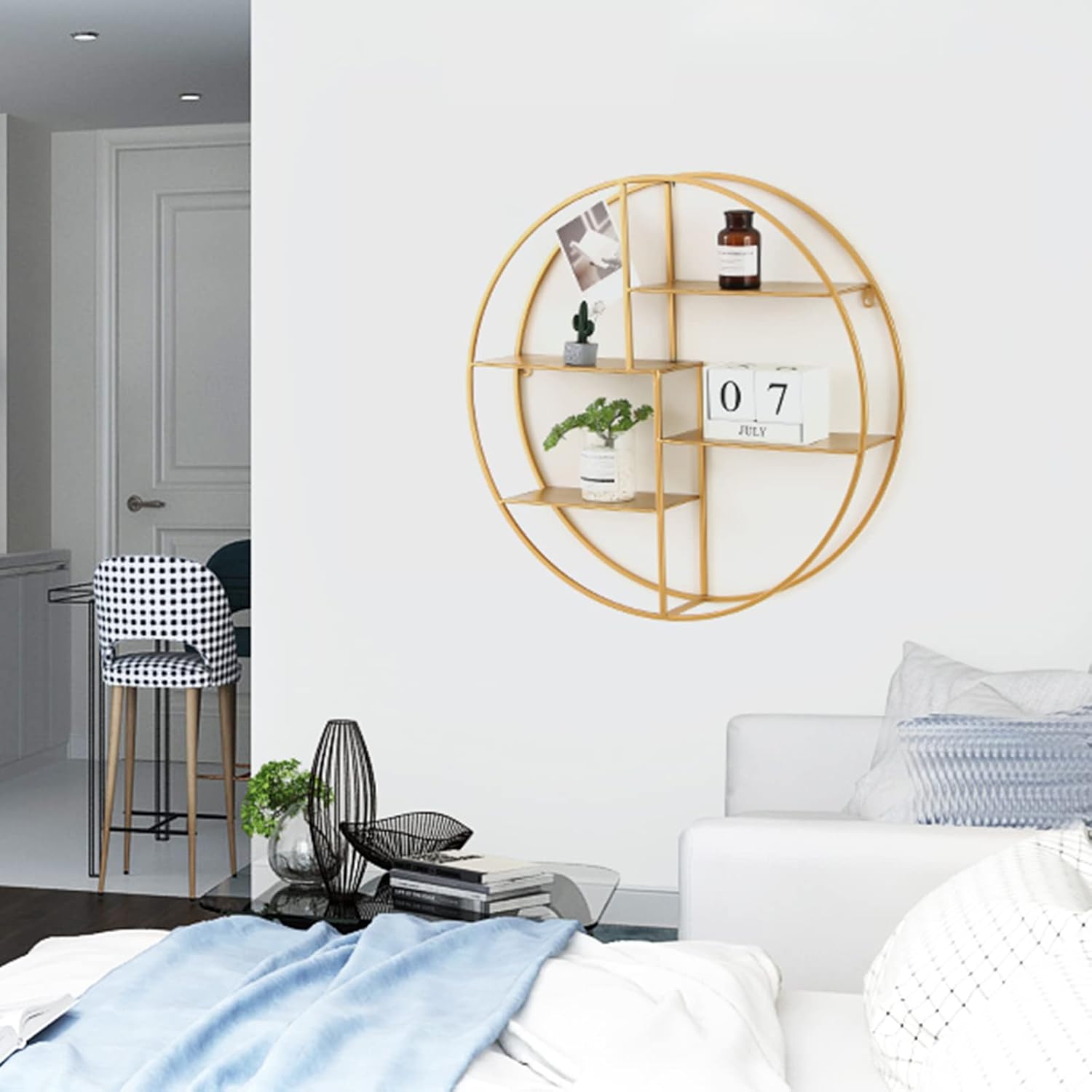 La repisa redonda dorada no solo optimiza el uso del espacio vertical, sino que también se convierte en el punto focal de cualquier pared, aportando orden, estilo y personalidad a tu hogar 🕊️✨.